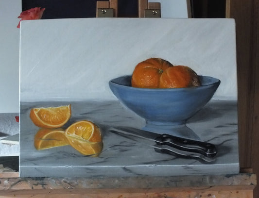Oranges in Blue Bowl Oil Painting